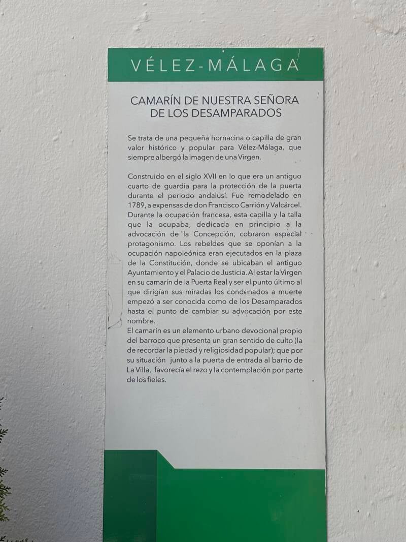 La Pontificia y Muy Antigua Cofradía de Ntro. Padre Jesús Orando en el Huerto y María Santísima de los Desamparados es una de las hermandades veleñas con mayor historia y veneradas de toda la Semana Santa de la localidad, tienen un gran arraigo histórico en la población y sobretodo, mantienen a dos de las imágenes más antiguas de Vélez-Málaga que se salvaron milagrosamente de la Guerra Civil y de los numerosas revoluciones o desastres medioambientales que sufrió la capital de la Axarquía.